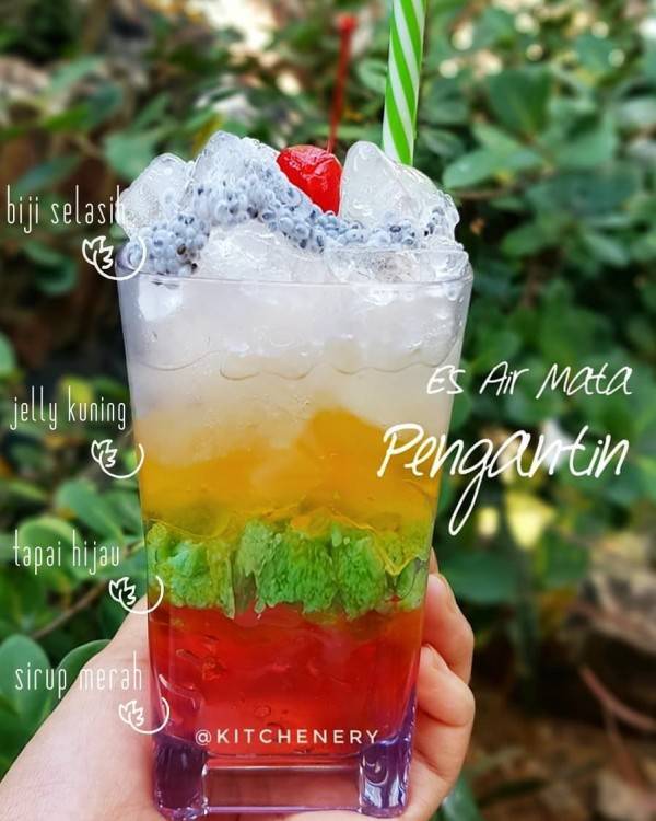 1 saset agar2 swallow putih 100 gr gula pasir 800 ml air natade coco secukupnya biji selasih rendam air matang syrup cocopandan pewarna merah kuning hijau cara membuat. Tak perlu jauh jauh ke inhu atau menunggu pernikahan adat riau untuk bisa menyantap segarnya es air mata pengantin. Minuman ini bisa dibilang mirip dengan es campur yang disajikan dengan beragam buah. Sebagai pelengkap biasanya ditambahkan blewah yang memiliki manfaat untuk kesehatan.