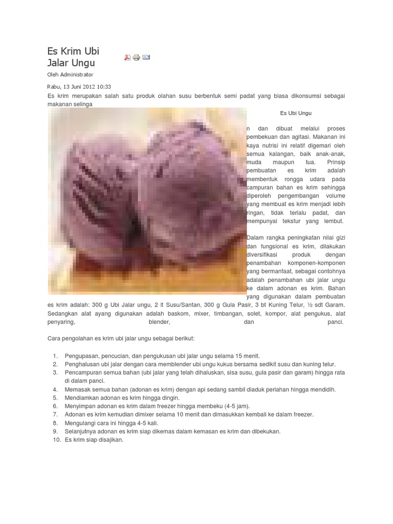 Bahan yang digunakan dalam pembuatan es krim adalah. 300 ml santan dari 12 butir kelapa kl sy pake santan instan cair 2 batang kayu manis 3 butir cengkeh 150 gr gula pasir ini bs dikurangi kl mau ga terlalu manis 12 sdt garam 2 lembar daun pandan sobek dan simpulkan 300 gr ubi jalar. Es krim ubi ungu judul asli. Biasanya ubi ungu hanya diolah menjadi kolak kue puding timus dll.