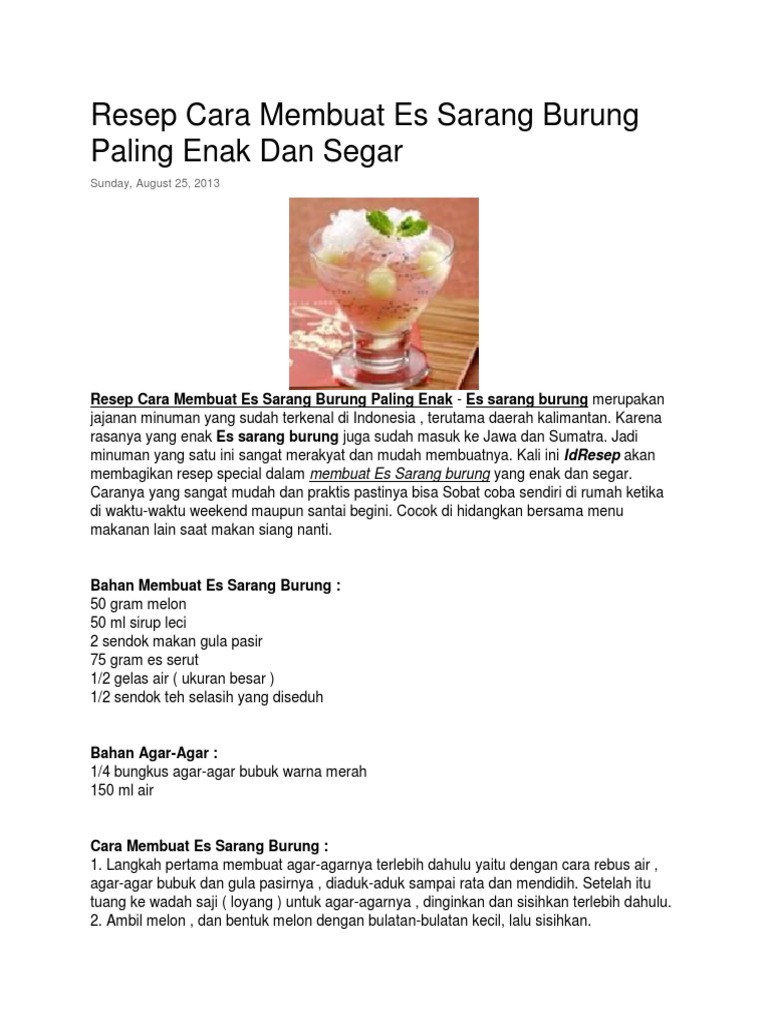 Caranya rebus 2 sachet agar agar putih dengan gula dan 500 ml air hingga mendidih. Jika sudah taruh agar agar yang sudah di parut ke dalam gelas. Informasi nilai gizi. Berikut resep dan cara membuat es sarang burung yang segar dna menarik.