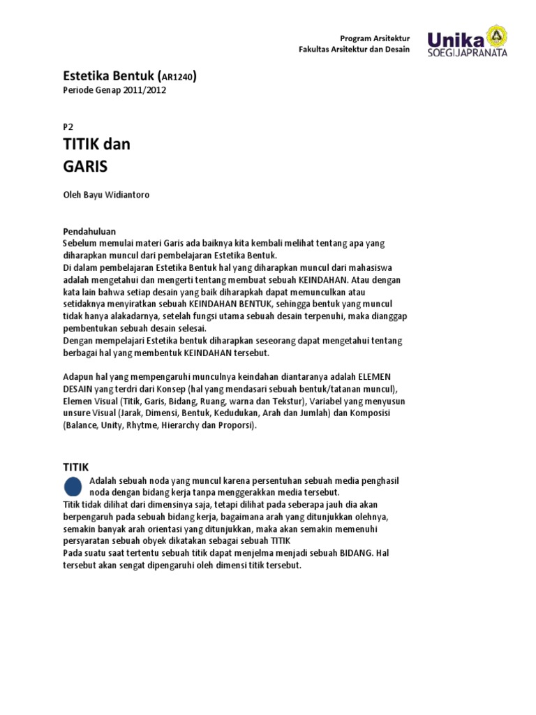 Pengertian estetika bentuk dalam. Desain rumah 2lantai minimalis. Komposisi titik tersebut memiliki ide dasar segitiga dan ide bentuk sayap kupu kupu memiliki keseimbangan informal berirama dinamis berskala normal vocal pointnya terletak pada warna karena memakai warna warni yang mencerminkan tema keceriaan dan menggunakan warna. Contoh komposisi titik yang tersusun dari 3 buah titik dengan dimensi yang berbeda garis adalah sebuah bentuk yang diawali oleh sebuah titik dan diakhiri oleh sebuah titik pula.