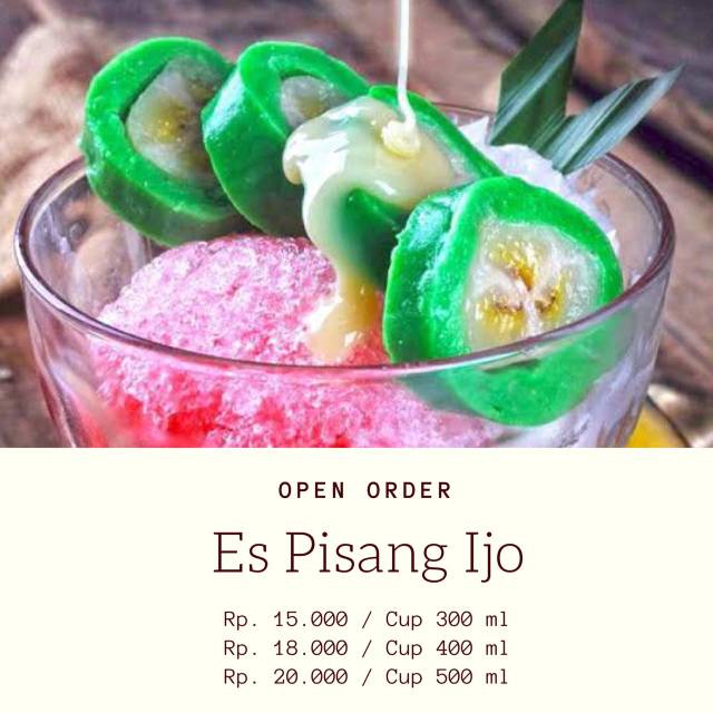 Bisnis es pisnag ijo ini dapat dijalankan sendiri namun bila perkembangan dari bisnis es pisang ijo semakin naik maka bisa merekrut karyawan untuk membantu mengembangkan usaha ini. Es pisang ijo poty merupakan es pisang ijo yang udah punya nama deh dibogor kebetulan ownernya juga teman sendiri dan dia sudah punya beberapa outlet dibogor untuk rasa es pisang ijo nya lilitan pisangnya tuh kenyal banget dengan porsi dan rasa yang pas seger kalo dimakan pas siang siang satu cup besar es pisang ijo nya dihargai 10000 150000. Update harga pisang terbaru bulan ini. Rasanya manis dan pisangnya pun matang.