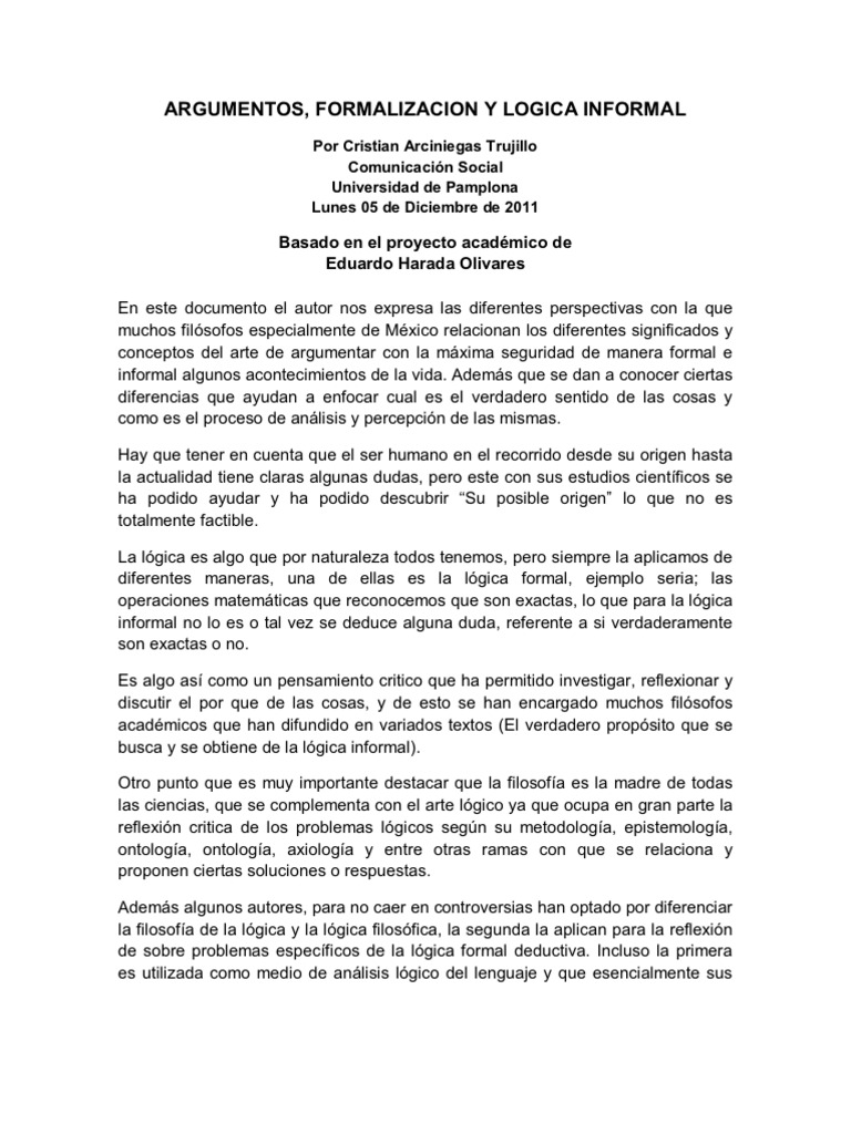 La logica informal es la de la argumentacion. Glosario de terminos gramaticales y retoricos la logica informal es un termino amplio para cualquiera de los diversos metodos de analisis y evaluacion de argumentos utilizados en la vida cotidiana. By ricardozapataariza updated. La logica formal es mas estricta comparada con la informal incluye logica matematica y cientifica.
