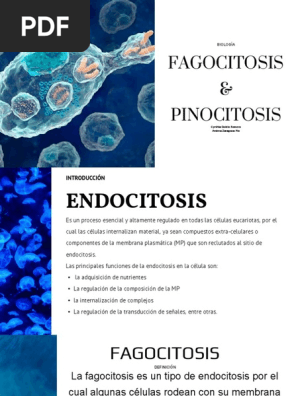 En este sentido la fagocitosis se conoce como la forma en que la celula come siendo que etimologicamente fago. La pinocitosis y la fagocitosis son los 2 tipos de endocitosis de las celulas. Este metodo ocurre cuando la celula rodea a organismo extranoluego de ello procede a aplastar parte de su membrana y encerrar dentro de si las partes de la particula. 1 con desprendimiento hacia el interior celular de una vesicula que contiene liquido con posibles moleculas disueltas o.