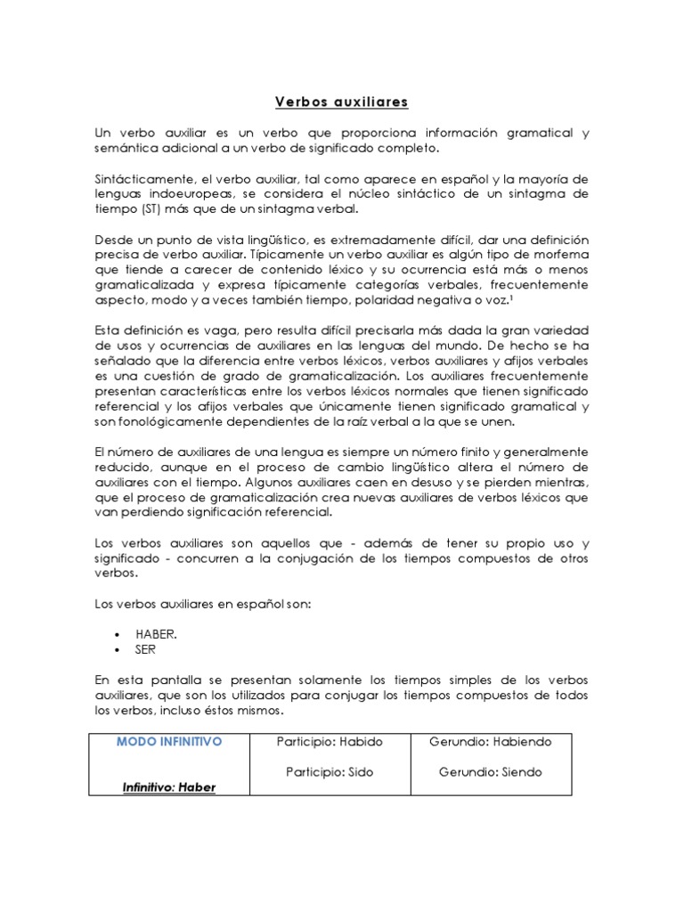 Que Es Un Verbo Auxiliar En Espanol