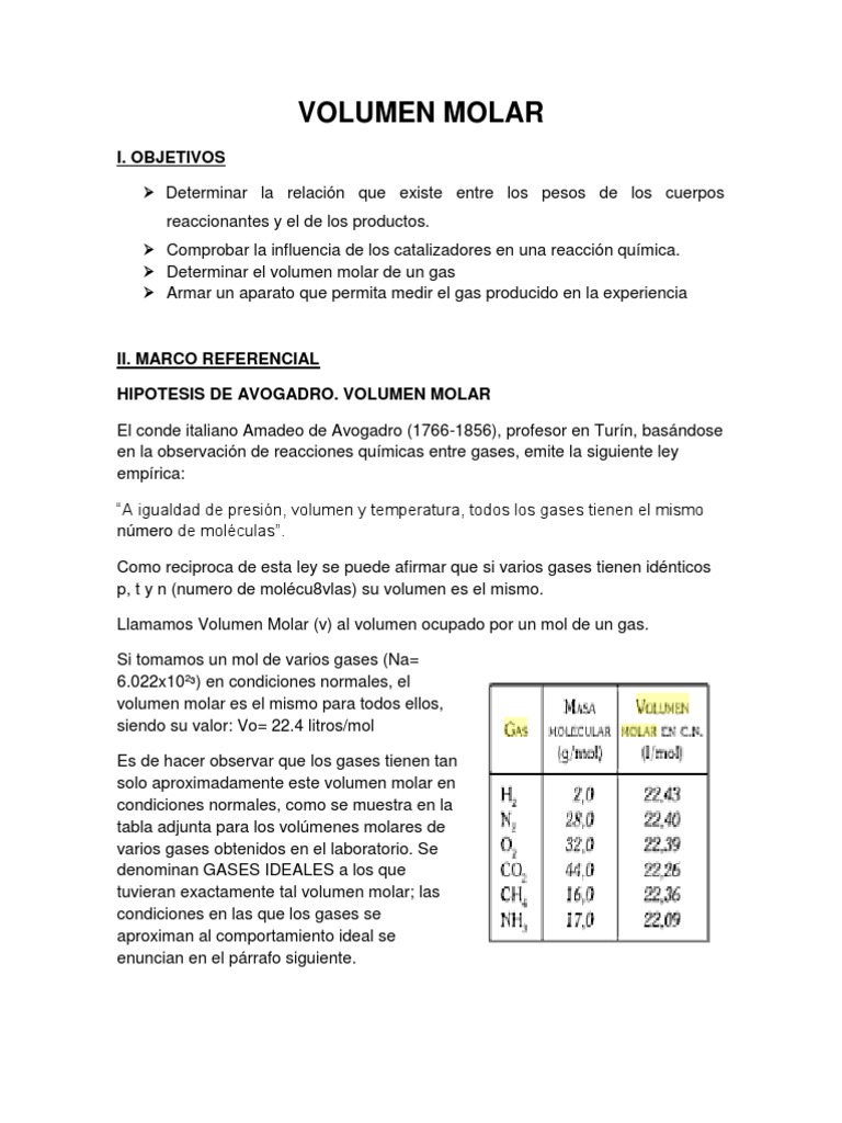 Que Es Volumen Molar En Quimica