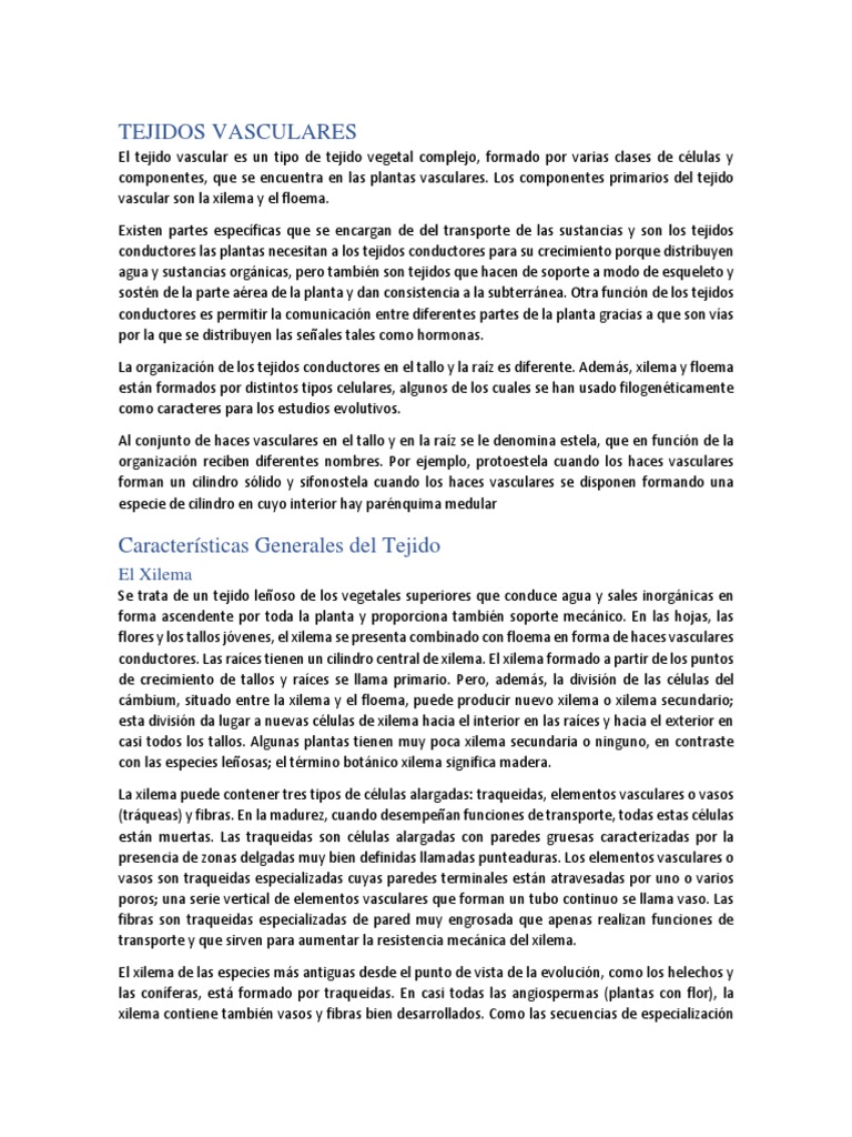 L tejido vascular es un tipo tejido vegetal complejo formado por varias clases de celulas y componentes que se encuentra en las plantas vasculares. Xilema controla fertirrigacion en diferentes zonas del mundo. El tejido del xilema muere despues de un ano y entonces se forma un xilema nuevo. De forma resumida podemos decir que el xilema es el tejido que constituye los vasos conductores lignificados de las plantas que transportan la savia bruta un conjunto de agua sales minerales y otros nutrientes desde la raiz hasta las hojas de las plantas.